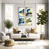 Decorate your living room with this beautiful Art Digital Download Abstract Blue Gold Bold Vibrant Decor Minimalist Print. Created to coordinate with 3 other art prints.