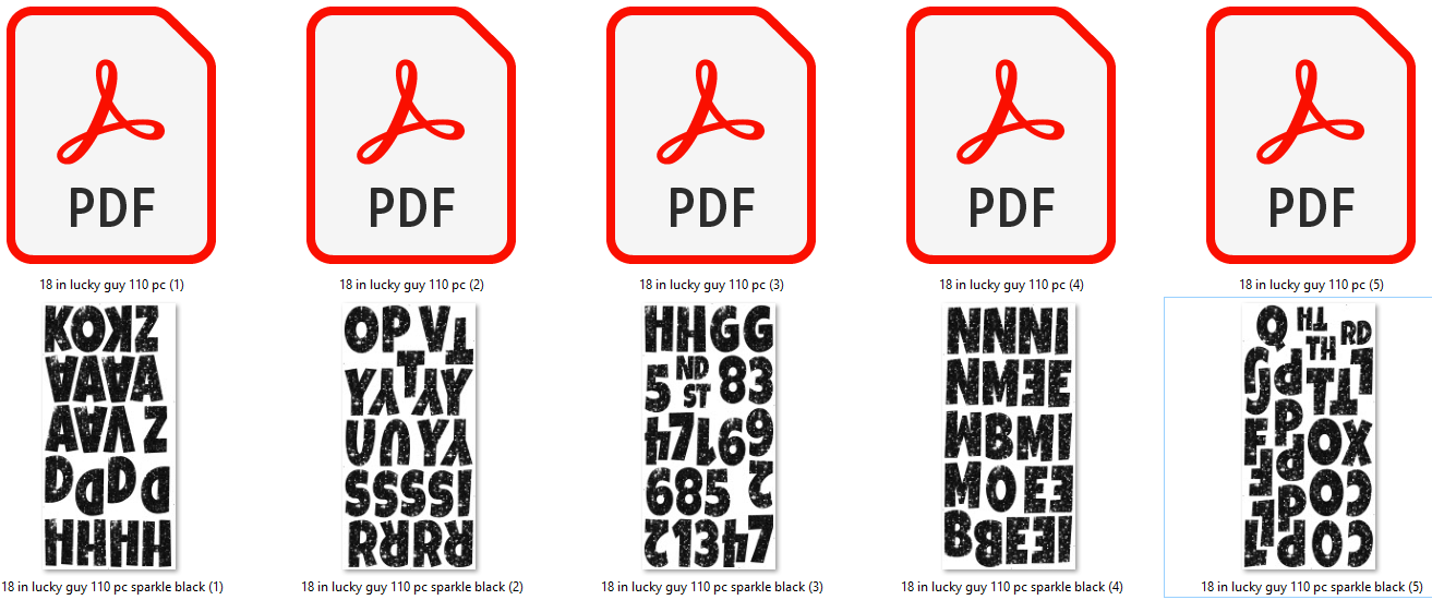 Included is the art file and cut file for a 5 full 4x8 sheets for Joyful Designs - BLACK 18" Sparkle Lucky Guy Letter & Number Set - 110 Pieces