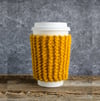 Main photo shows Knit Coffee Cozy in Honey Yellow color.