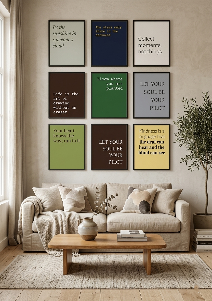 Elevate your living or workspace with this curated collection of 9 aesthetic digital posters. Designed with a focus on Scandinavian minimalism and meaningful typography, this set is perfect for creating a sophisticated gallery wall or adding a touch of inspiration to any room.