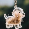 A transparent DIY pet hair memorial keychain box, a sweet keepsake for dog lovers.