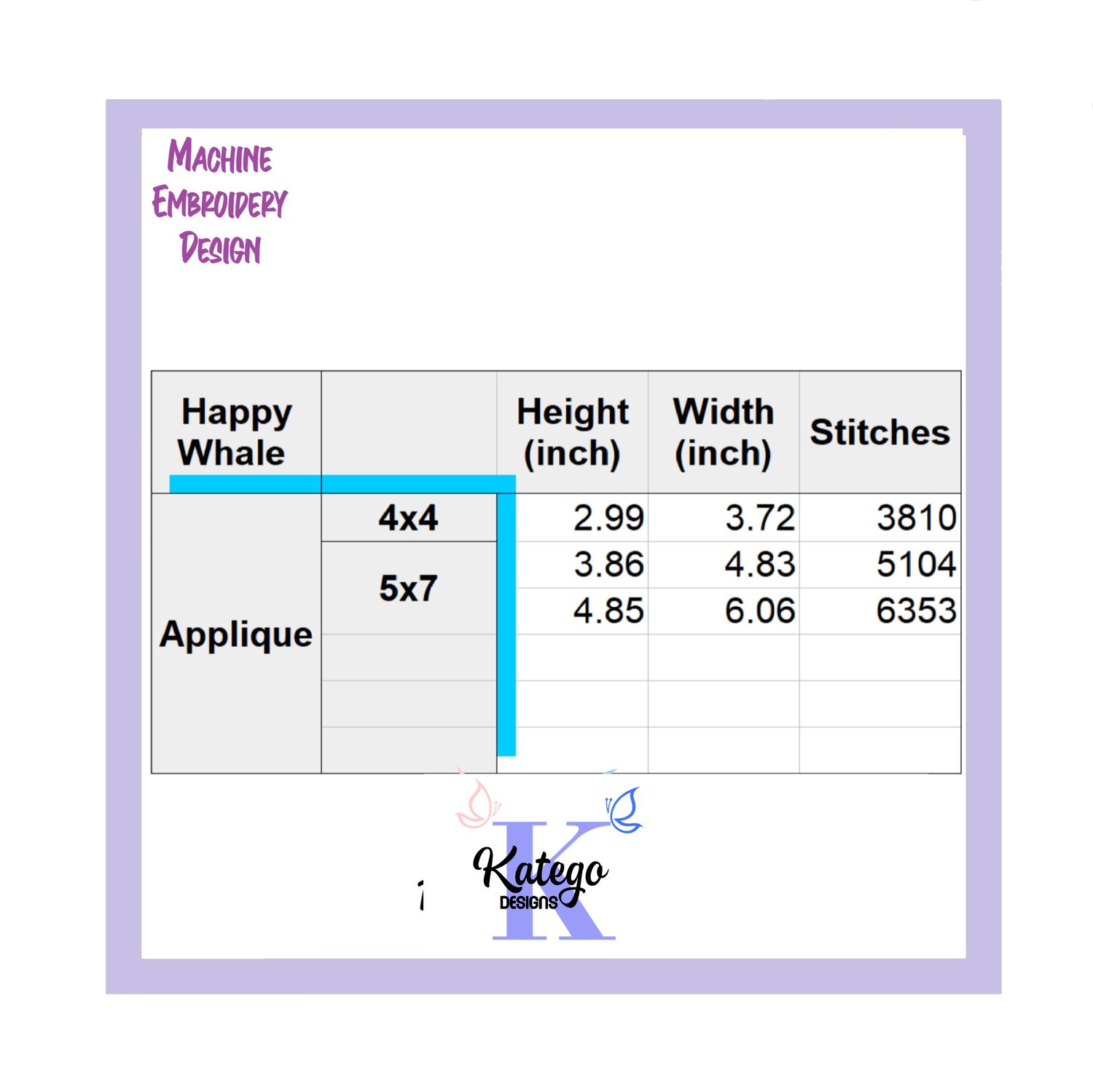- Happy Whale Applique: 4x4 and 5x7 Hoop.