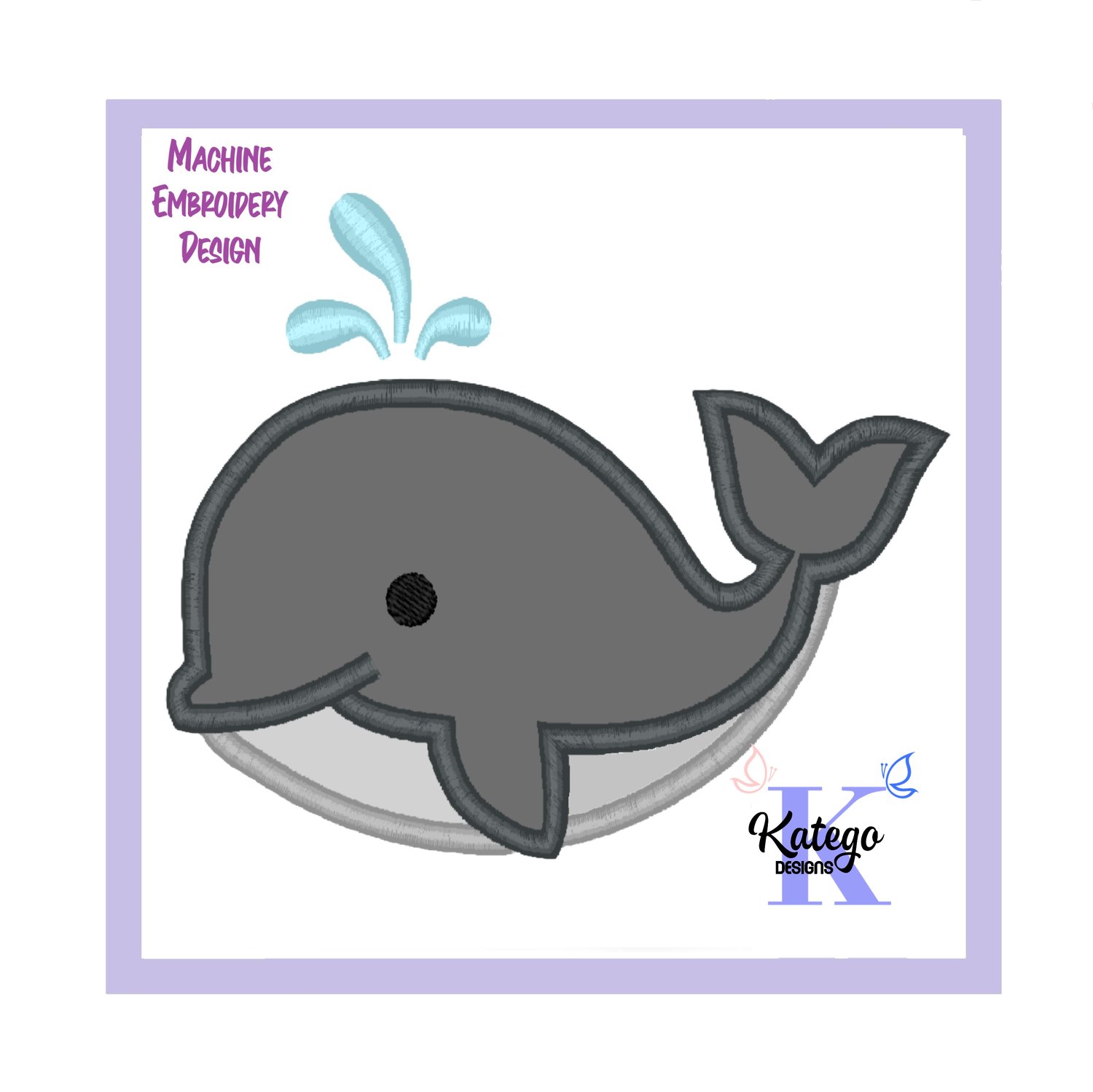 Happy Whale Applique Embroidery Design, Whale Embroidery Design, PES Design - PES Machine Embroidery Design