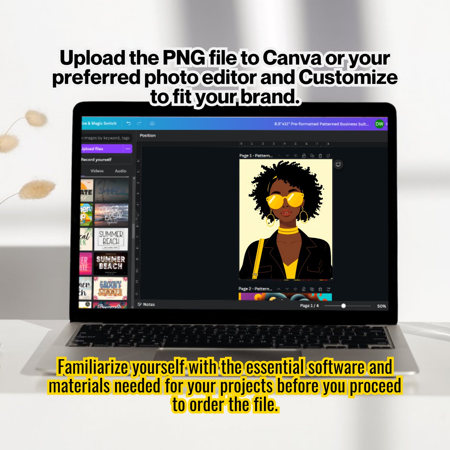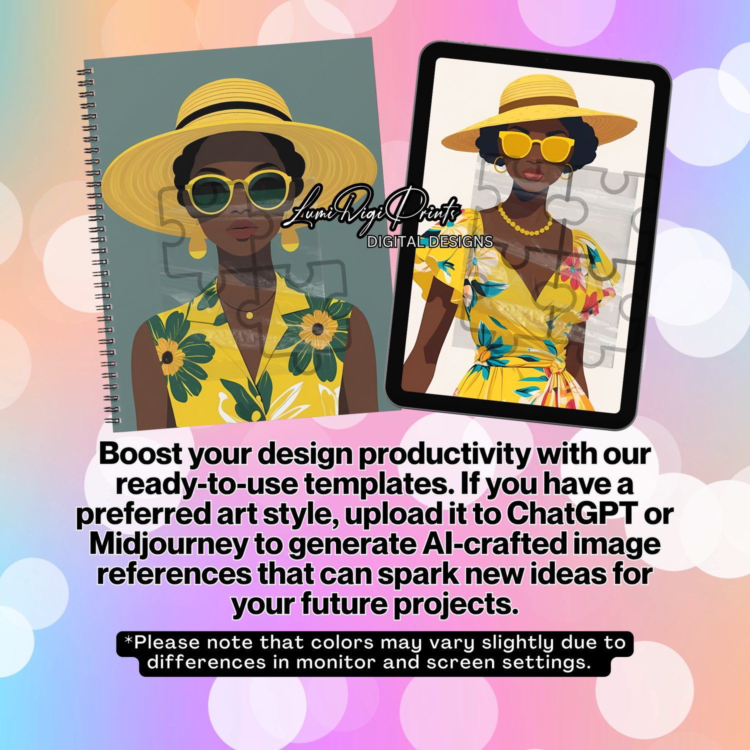 Add radiant summer vibes to your journal, planner, or notebook designs with this bold and stylish cover art bundle! Sunkissed & Styled features four high-resolution PNG designs of confident, fashionable Black women in vibrant tropical outfits — perfect for print or digital use.