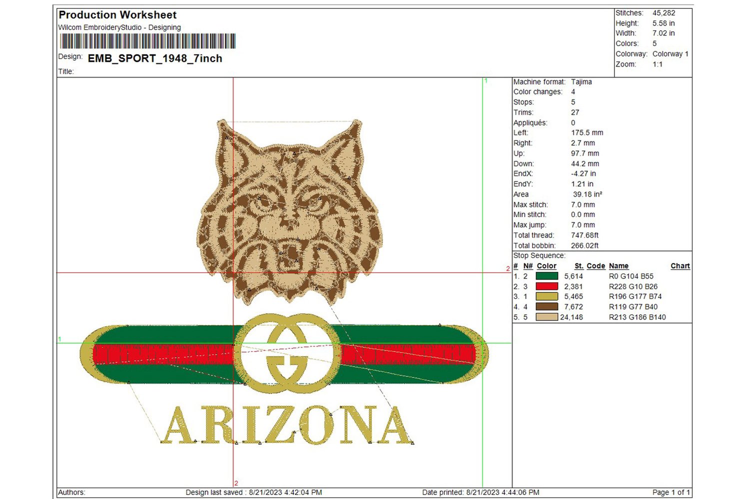 Gu.cci NCAA Arizona Wildcats Embroidery Designs, NCAA Arizona College Football Team Embroidery Files, Game Day Football Machine Embroidery, 3 sizes, Machine Embroidery Digital Download