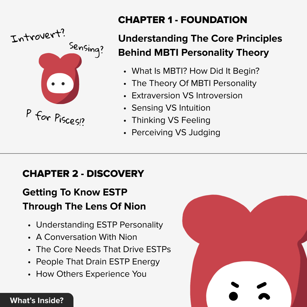 Designed specifically for the ESTP's mind, this self-discovery guide breaks down the inner structure behind your thoughts, emotional patterns, strengths, blind spots, and growth path with depth, clarity, and real-world application.
