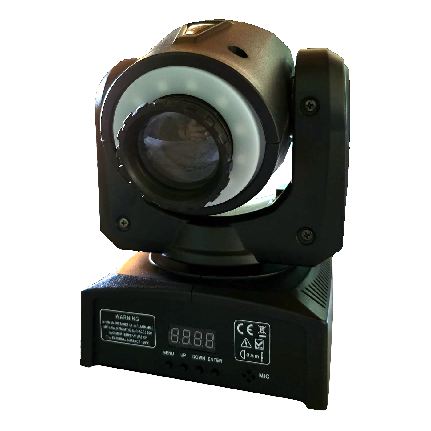 • Selección de 7 Gobos (propios del equipo) + Open + rotación de la rueda de Gobos + Shake.