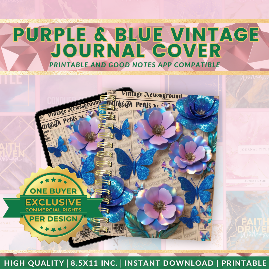 Immerse in creativity with our Purple & Blue Vintage Journal Cover, designed for compatibility with the Goodnotes app. Fully editable and thoughtfully designed in an 8.5x11 in format, these covers seamlessly fuse artistic expression with practicality.