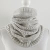 The cowl is worked seamlessly in the round with circular needles.