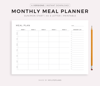 Monthly Meal Planner, Printable & Fillable PDF, A4/Letter Size