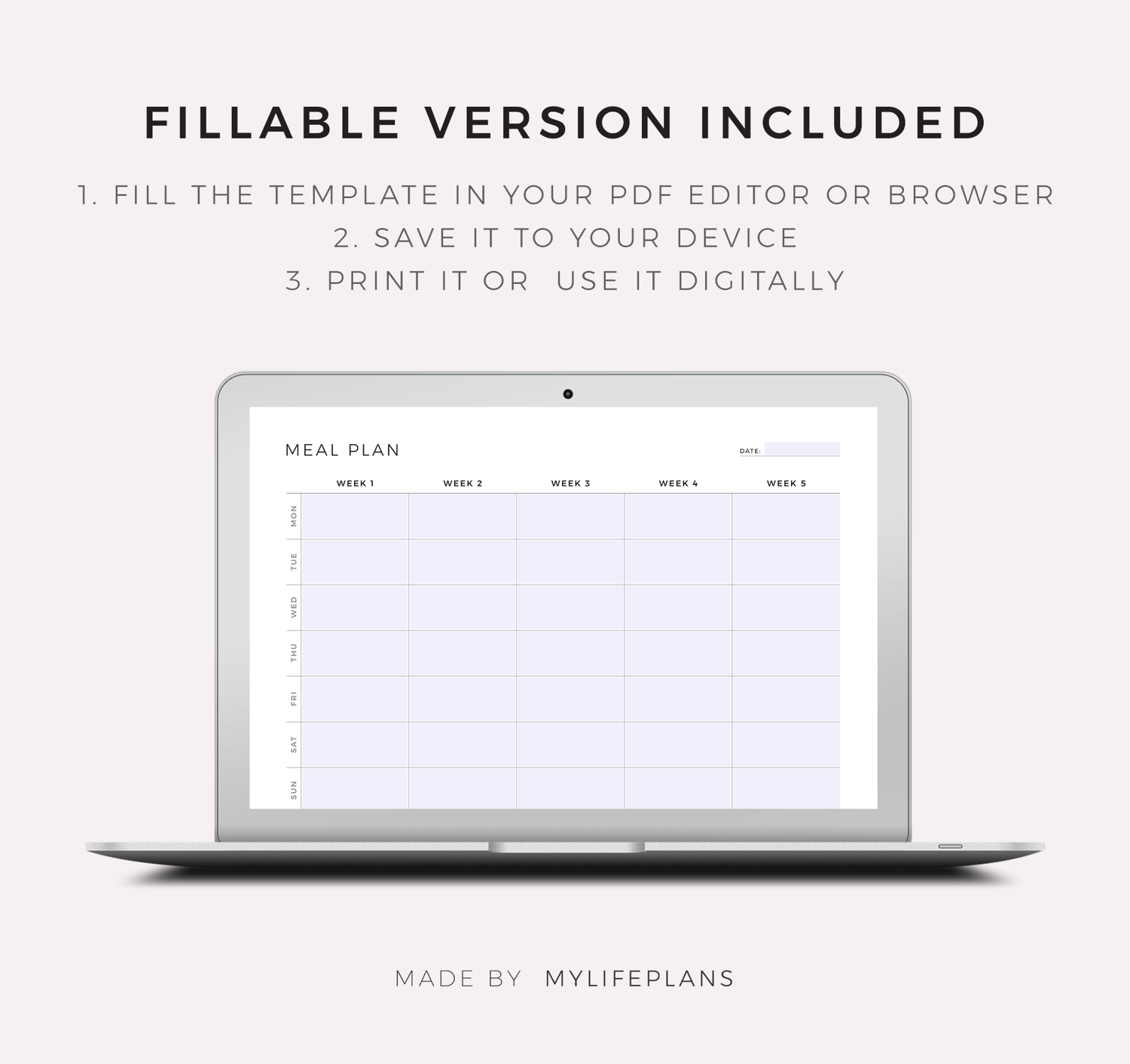 This is a printable monthly meal planner — just download, print, and start using it right away.