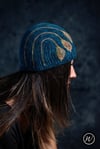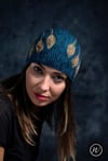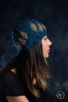 Shown in RiverKnits BFL DK in shades Sommeliche Nachthimmel & Shroom [246yd/225m per 100g; 100% BFL]Shown in size 22in/56cm on model with 22.75in/57.75cm circumference head