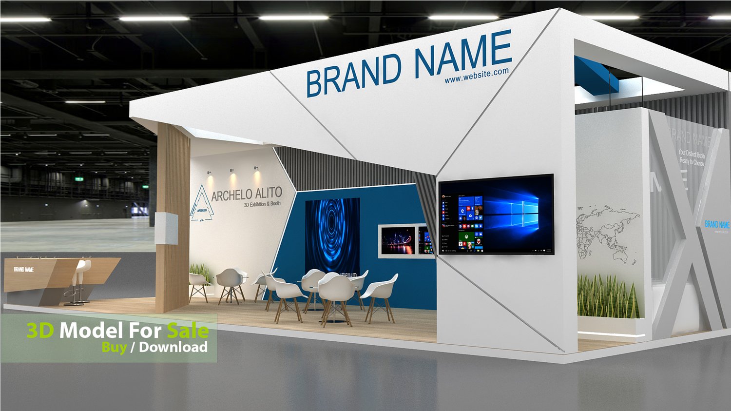 This professional 3D booth model is designed for exhibitions, trade shows, expos, fairs, and event displays.