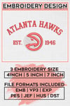 NBA Atlanta Hawk Team Est Logo Embroidery Files, NBA Atlanta Hawk Basketball Team Embroidery Designs, NBA Teams, Machine embroidery Digital Download