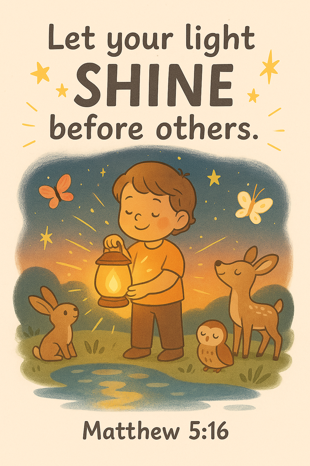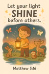 Brighten any child’s space with this uplifting Matthew 5:16 wall art bundle! This set includes two printable designs of the beloved verse “Let your light shine before others”, each with a unique, heartwarming illustration of a young child holding a glowing lantern surrounded by nature.