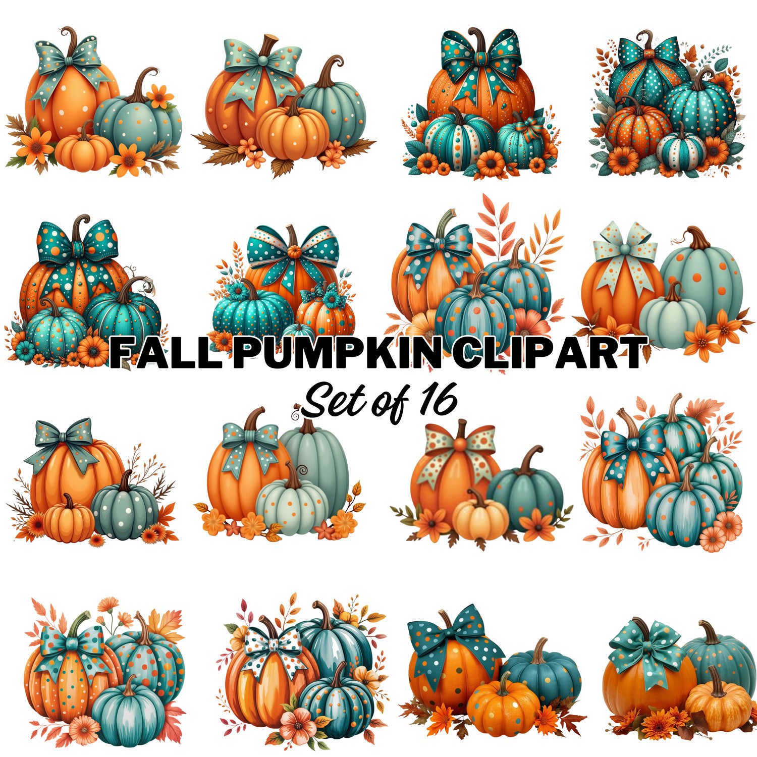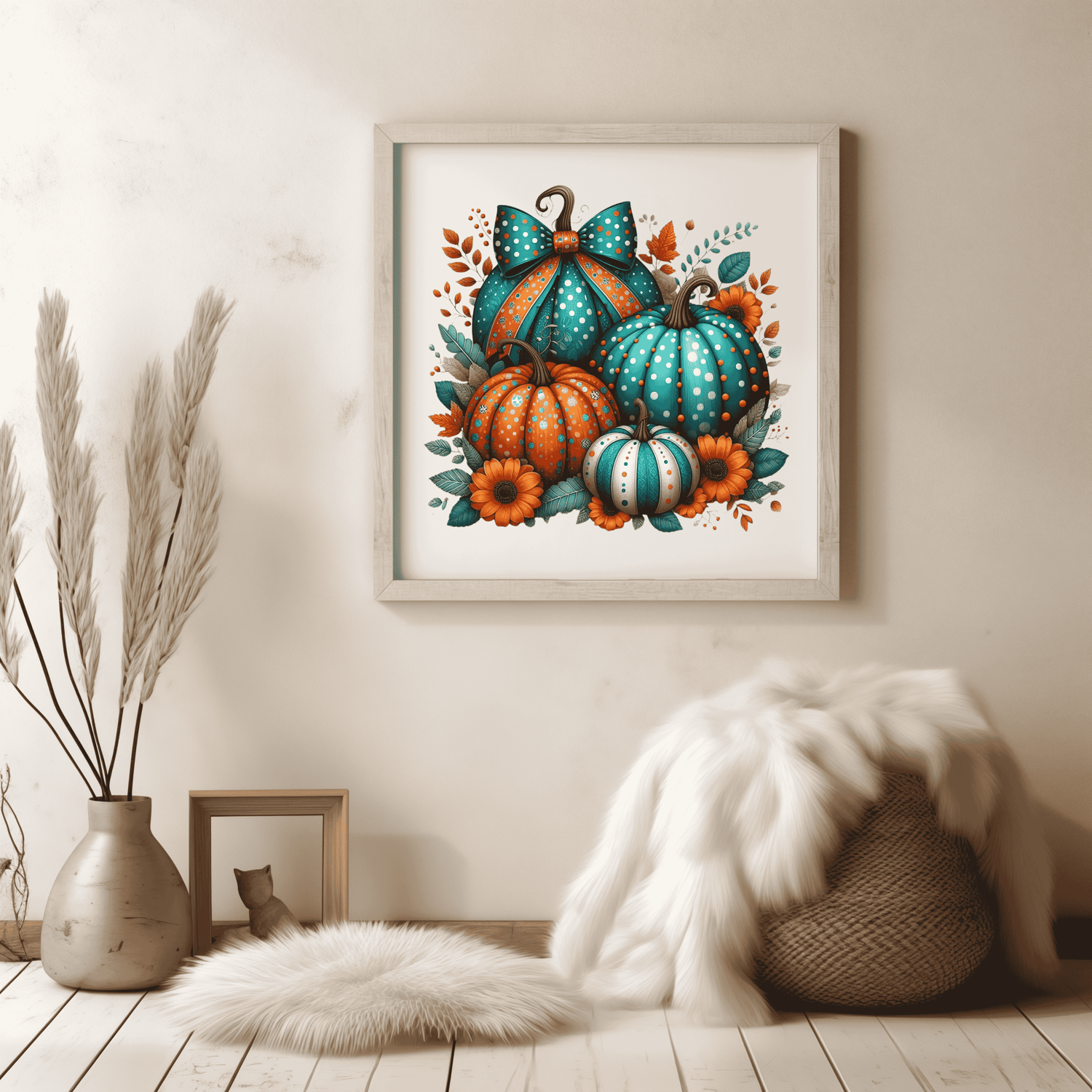 Fall pumpkin teal_Orange, Watercolor, realistic,PNG