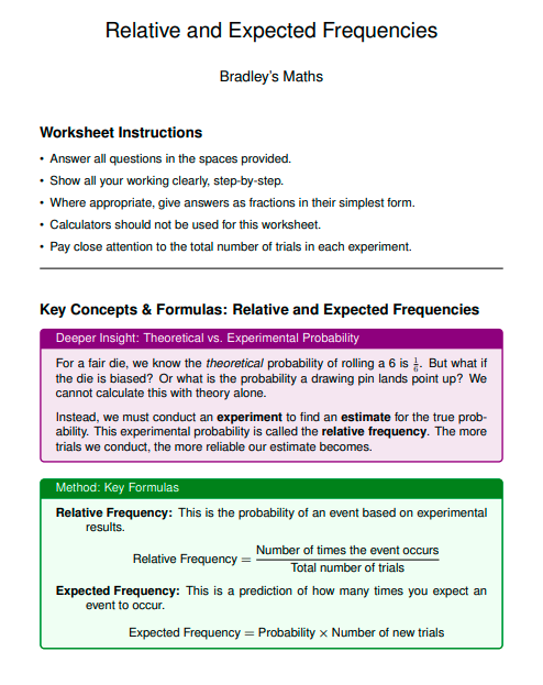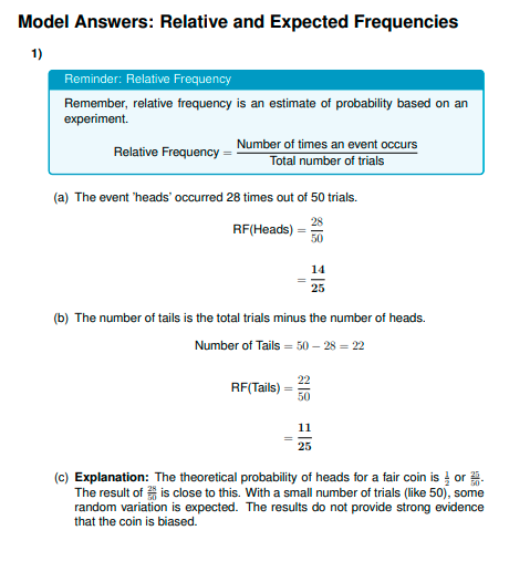 IGCSE Extended level Maths: Relative and Expected Frequencies (Worksheet & Model Answers)