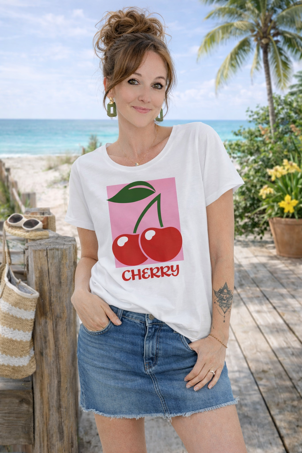 Cherry, c’est le tee-shirt en coton tout doux que tu vas adorer enfiler encore et encore. Sa couleur fraîche et son col rond classique en font une pièce facile à vivre, que tu sois team jean baskets ou jupe féminine.