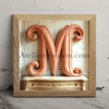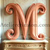 The letter M terracotta Art Nouveau typeface inspired by Alphonse Mucha's