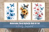 Watercolor Floral Butterfly Wall Art | Flower Botanical Printable Artwork | Set of 3 Prints