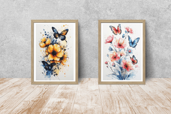 Capture a moment of fleeting beauty and bring it into your home. Our "Ethereal Wings & Wildflowers" collection features three stunning watercolor compositions that celebrate the delicate dance between nature’s most vibrant blooms and its most graceful travelers.