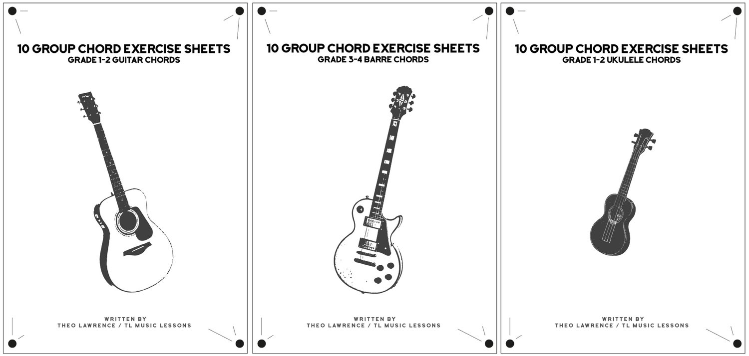 As my students progress up to grade 3 and 4 level they move on to barre chords, so this book has been made for those players, to play along with the other ability levels in the youth music group. Perhaps there will be other groups in the world that will find this useful in a similar type of group scenario. For many others, the books can also be used as exercise books for the individual instrument level, and therefore there are 3 seperate ebooks included in the online download.
