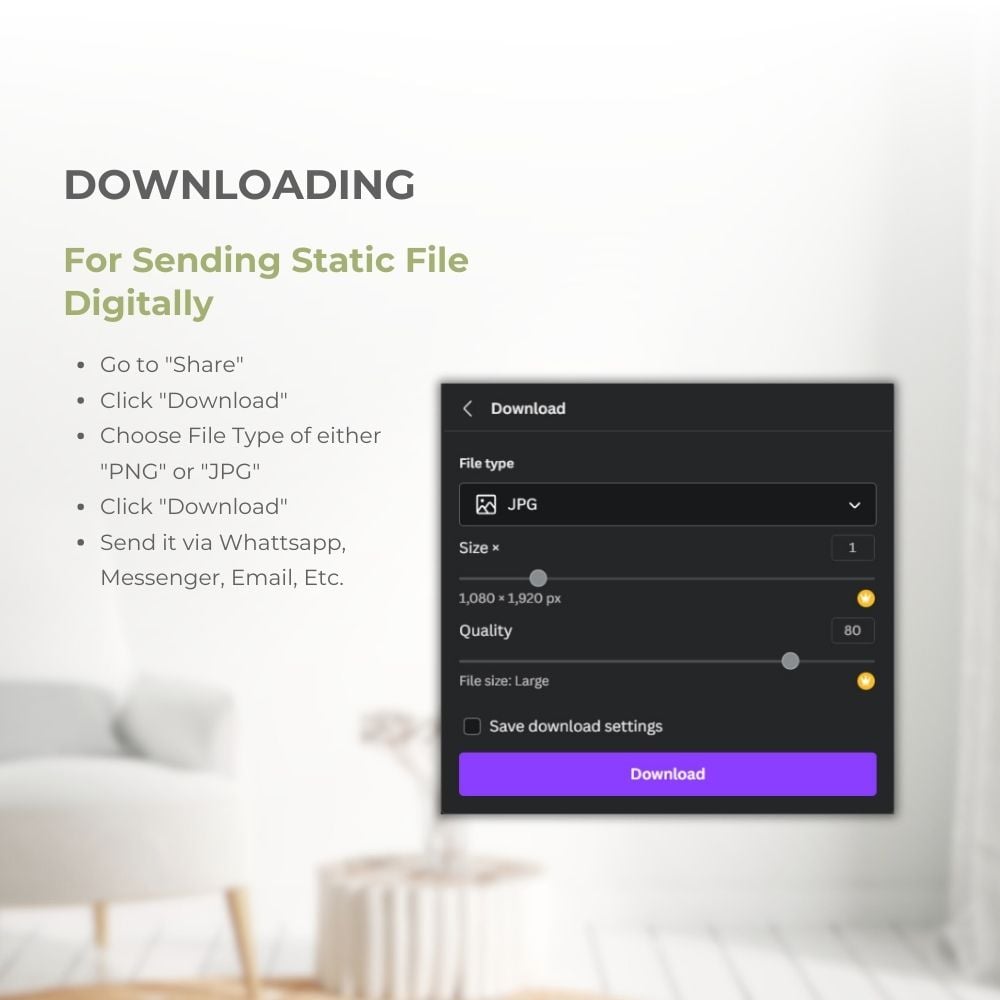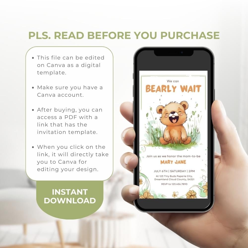 • AFTER PURCHASE, download the PDF. Click "EDIT YOUR TEMPLATE HERE", your CANVA template will open. EDIT then DOWNLOAD as JPG or PNG.