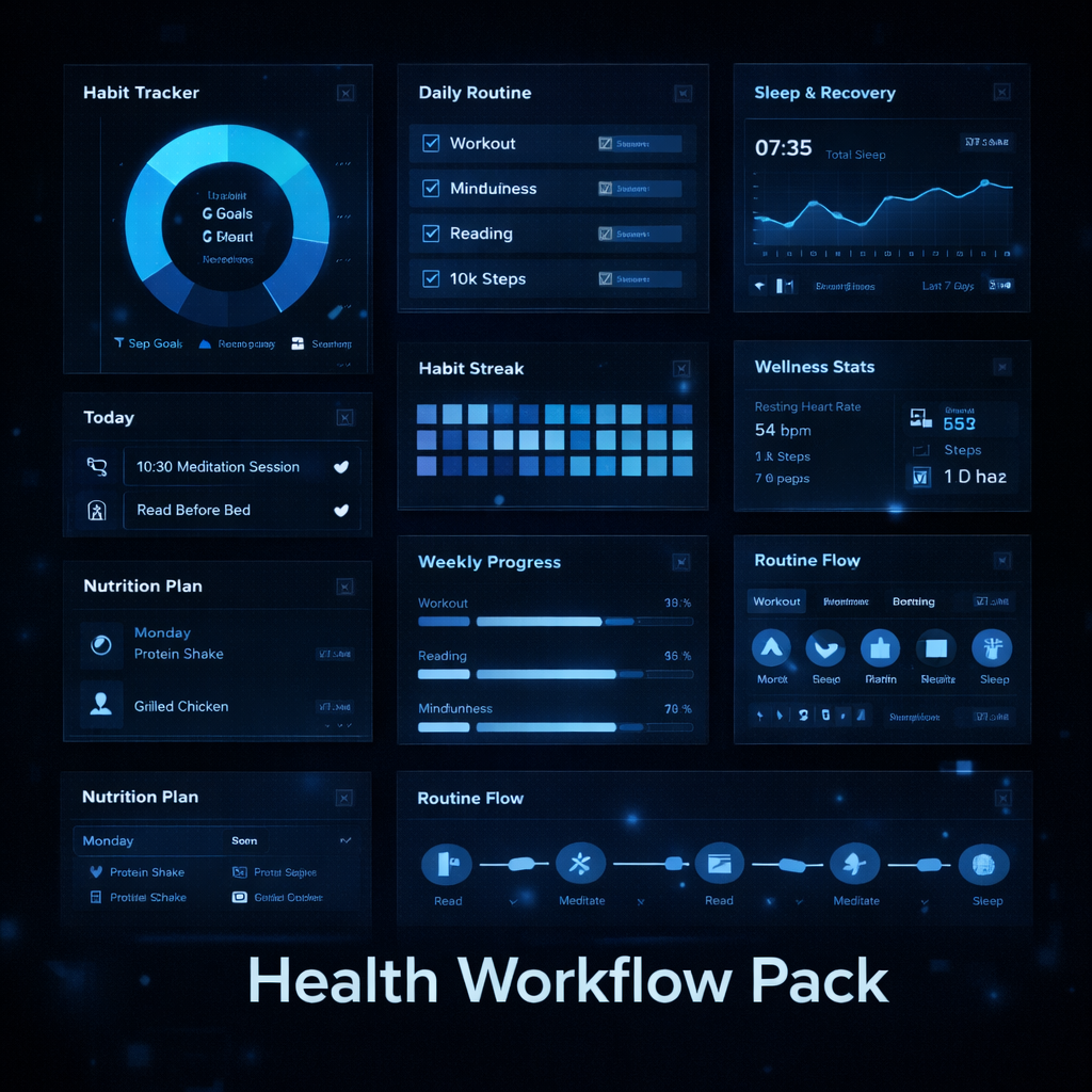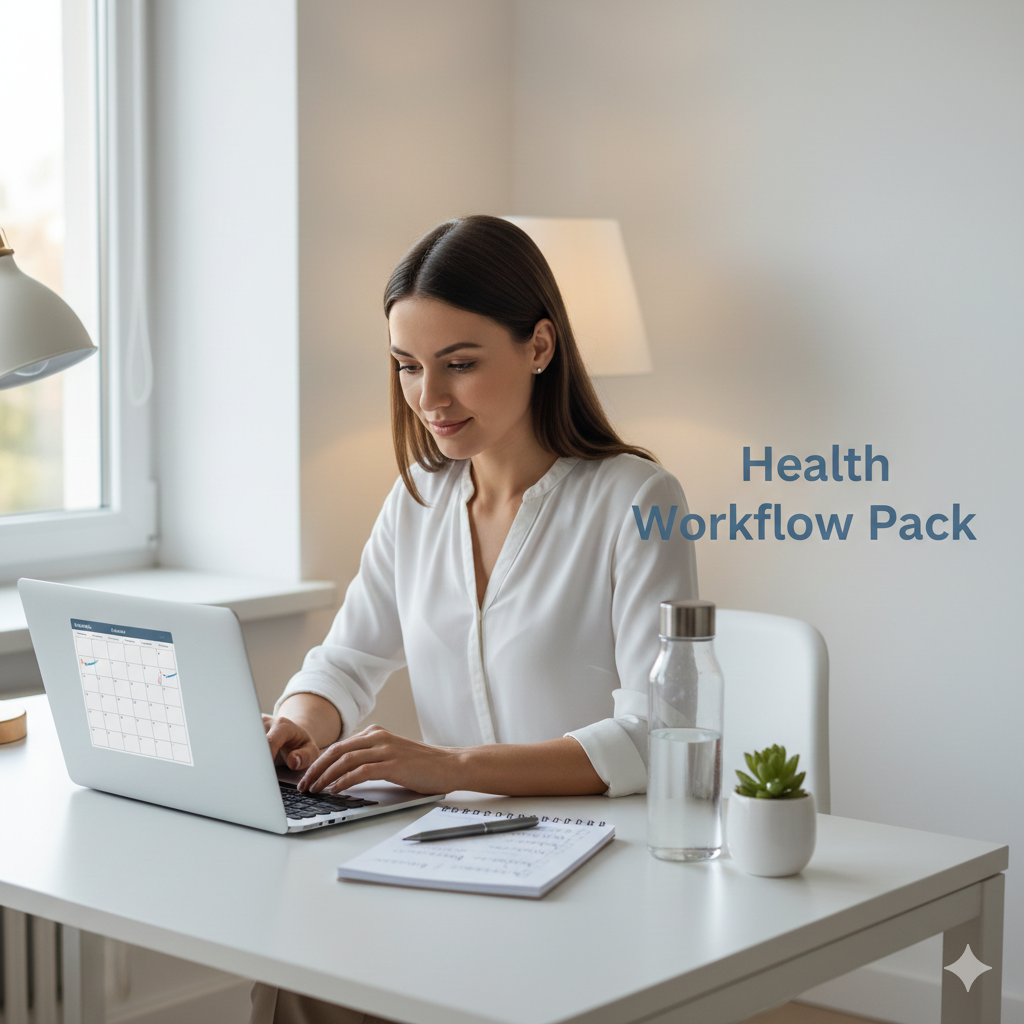 Health systems usually fail because they’re too ambitious or too complex. This pack gives you baseline workflows: defaults that are easy to run, minimal tracking, and a reset protocol when you fall off.