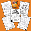 These cute Halloween Coloring Sheets are great for Halloween-themed celebrations at home, classroom parties, bulletin board displays, party favors, kids Halloween tables, homeschooling, and treats for trick-or-treaters!