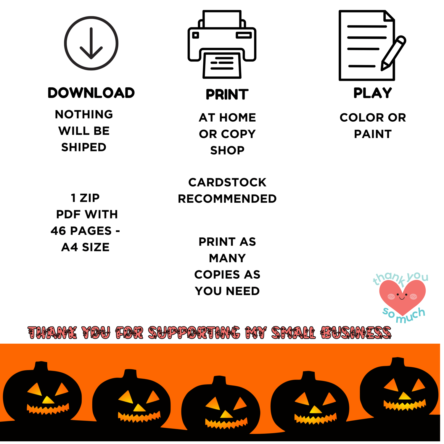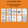 1 x High-quality Zip PDF file containing 46 Printable Halloween Coloring Pages (Including cover)