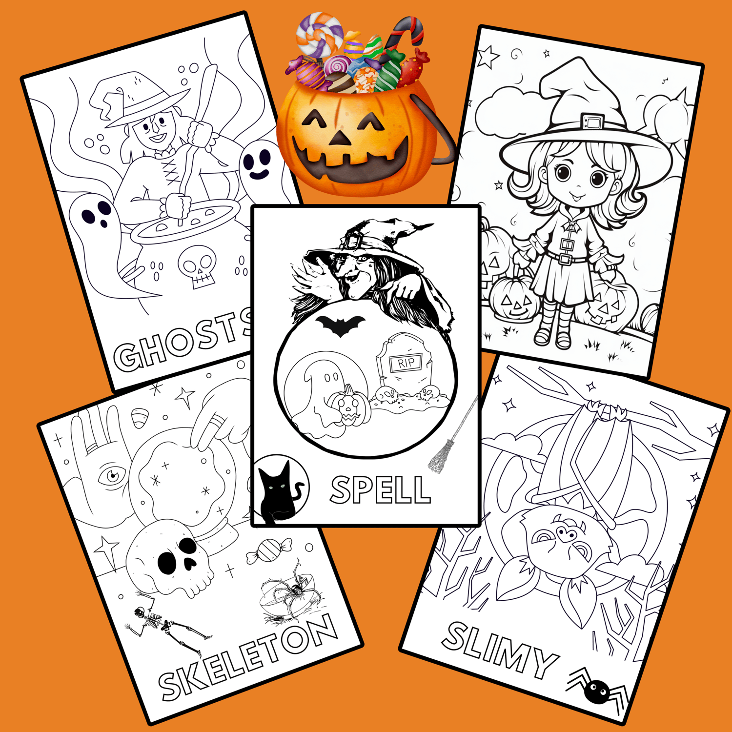 Celebrate Halloween with this cute Halloween Coloring Book—the perfect Spooky Kid Activity. This kid's coloring book includes 45 creepy coloring pages featuring witches, black cats, spiders, haunted houses, pumpkins, candy, bats, and more. Download and print for a fun, spooky kids' activity.