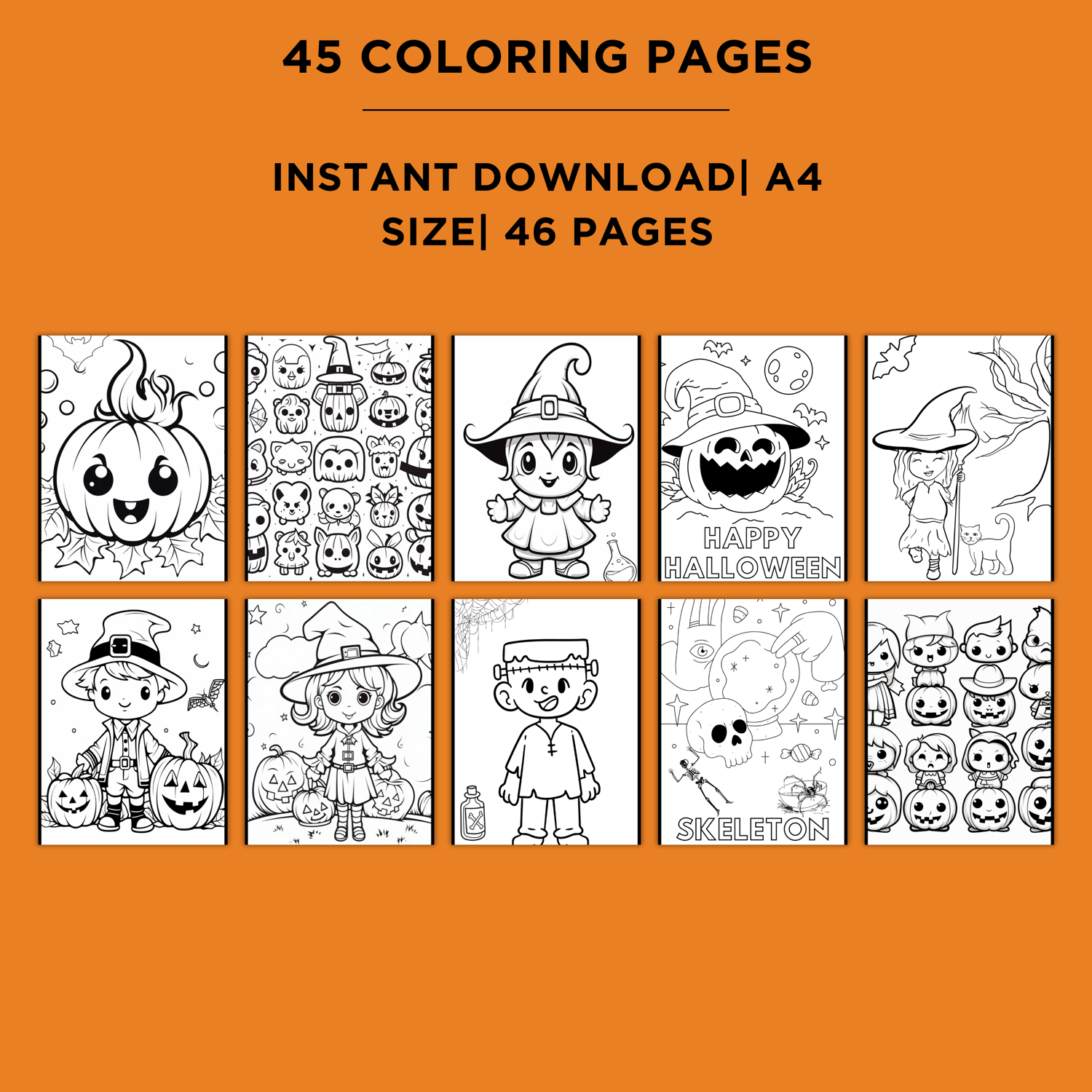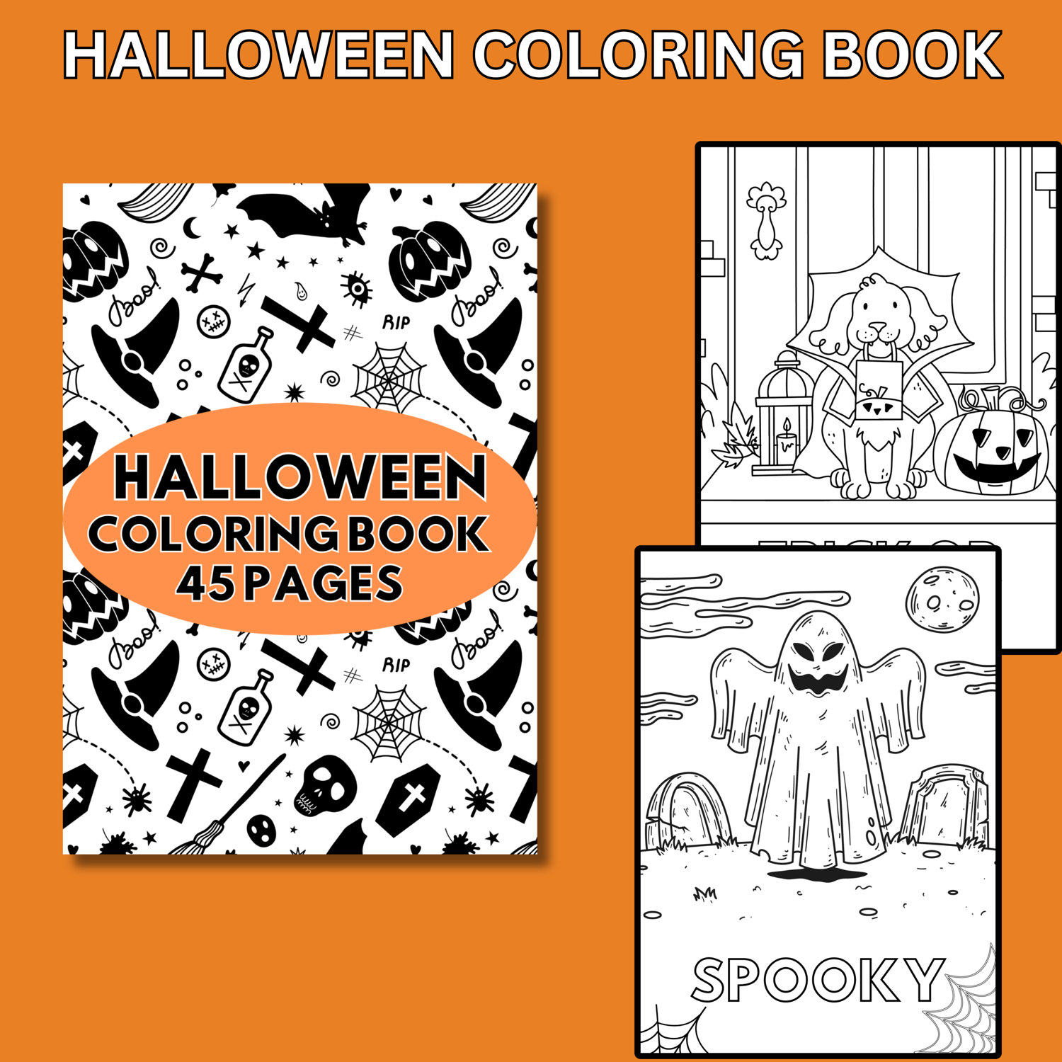 Halloween Coloring Book, 45 Cute Coloring Pages for Kids