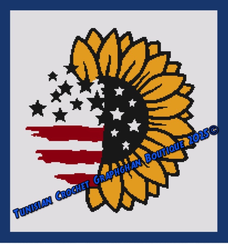 Sunflower USA Flag Throw Tunisian Crochet Pattern