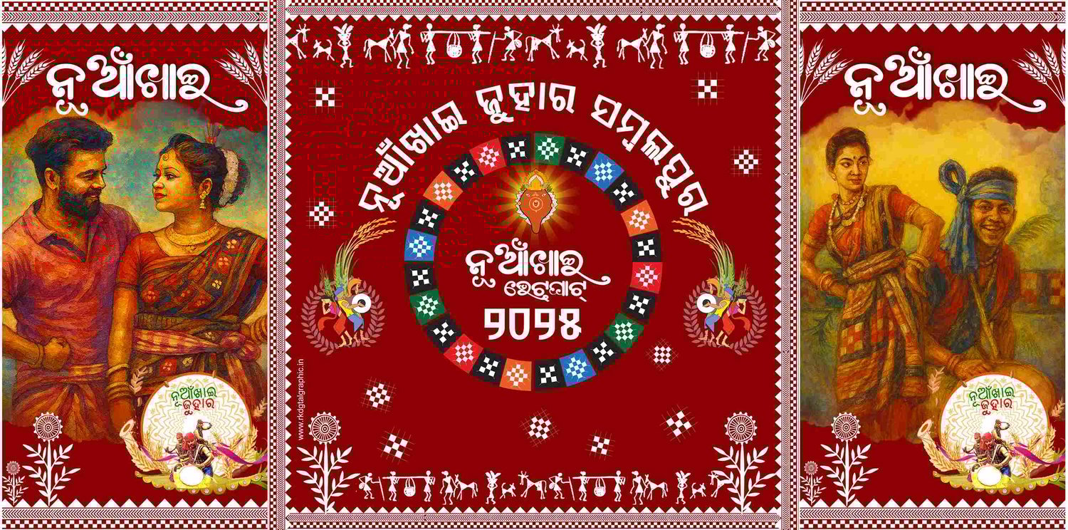 Nuakhai is not just a festival; it is the soul of Western Odisha. A celebration deeply rooted in gratitude, it honors the first harvest and the blessings of nature. On this auspicious day, people offer the newly harvested grains to Maa Samaleswari before partaking in a grand feast and community gatherings. Nuakhai is about family, culture, and the spirit of togetherness — and what better way to showcase this festive mood than with visually stunning banners and stage decorations?