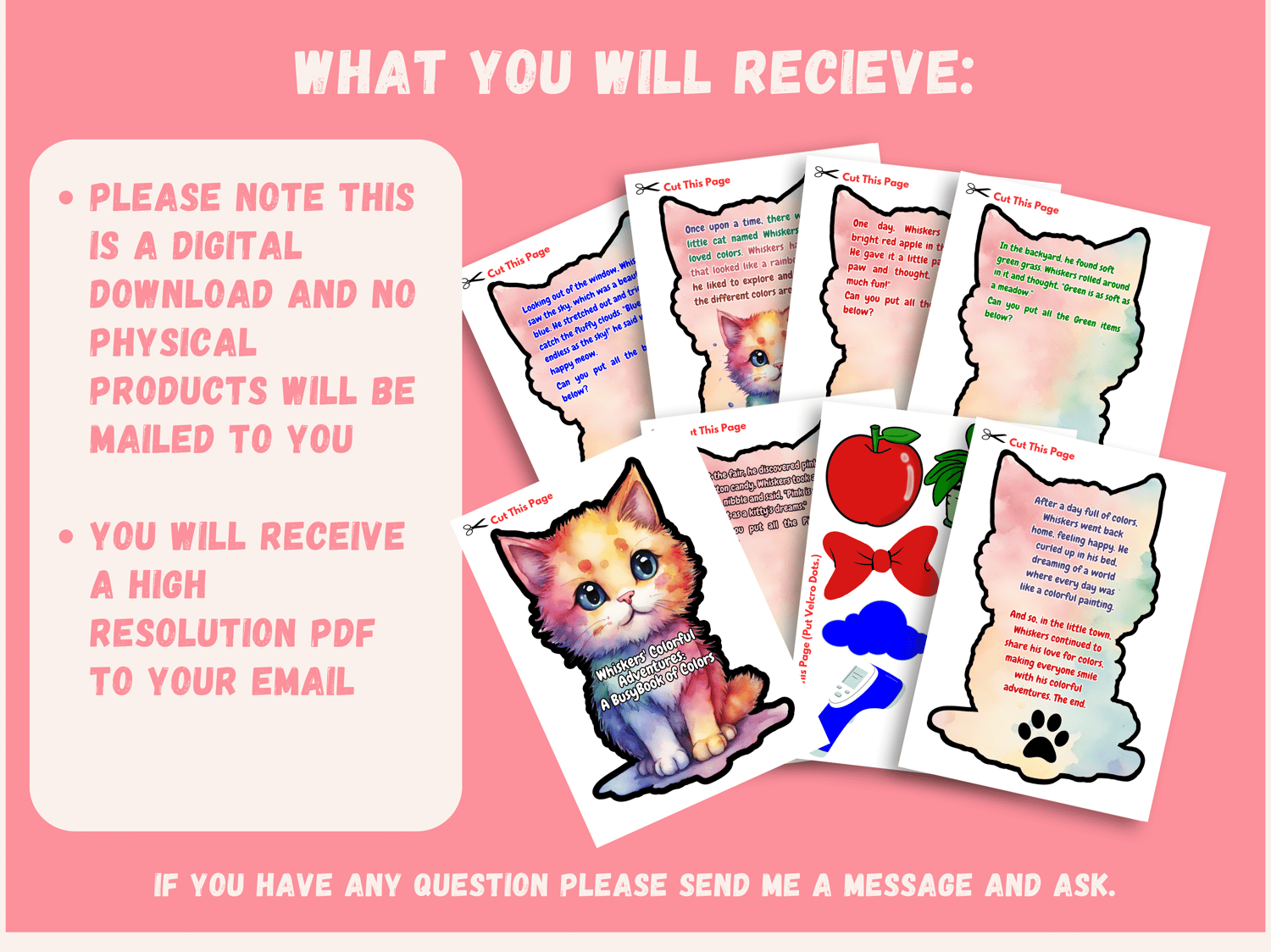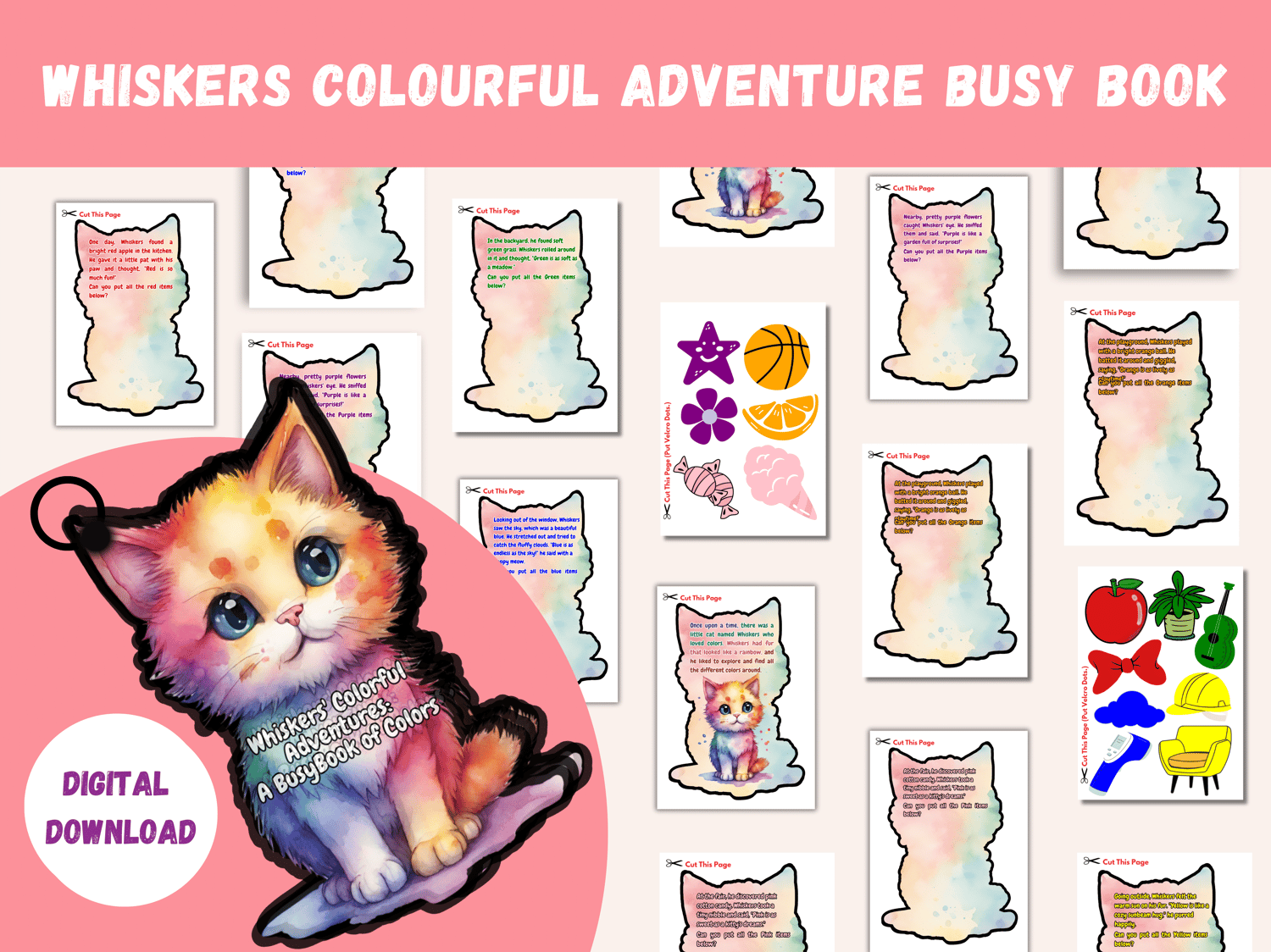 Whiskers Colour Adventure Busy book for children, Preschooler Printable Activity Book
