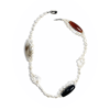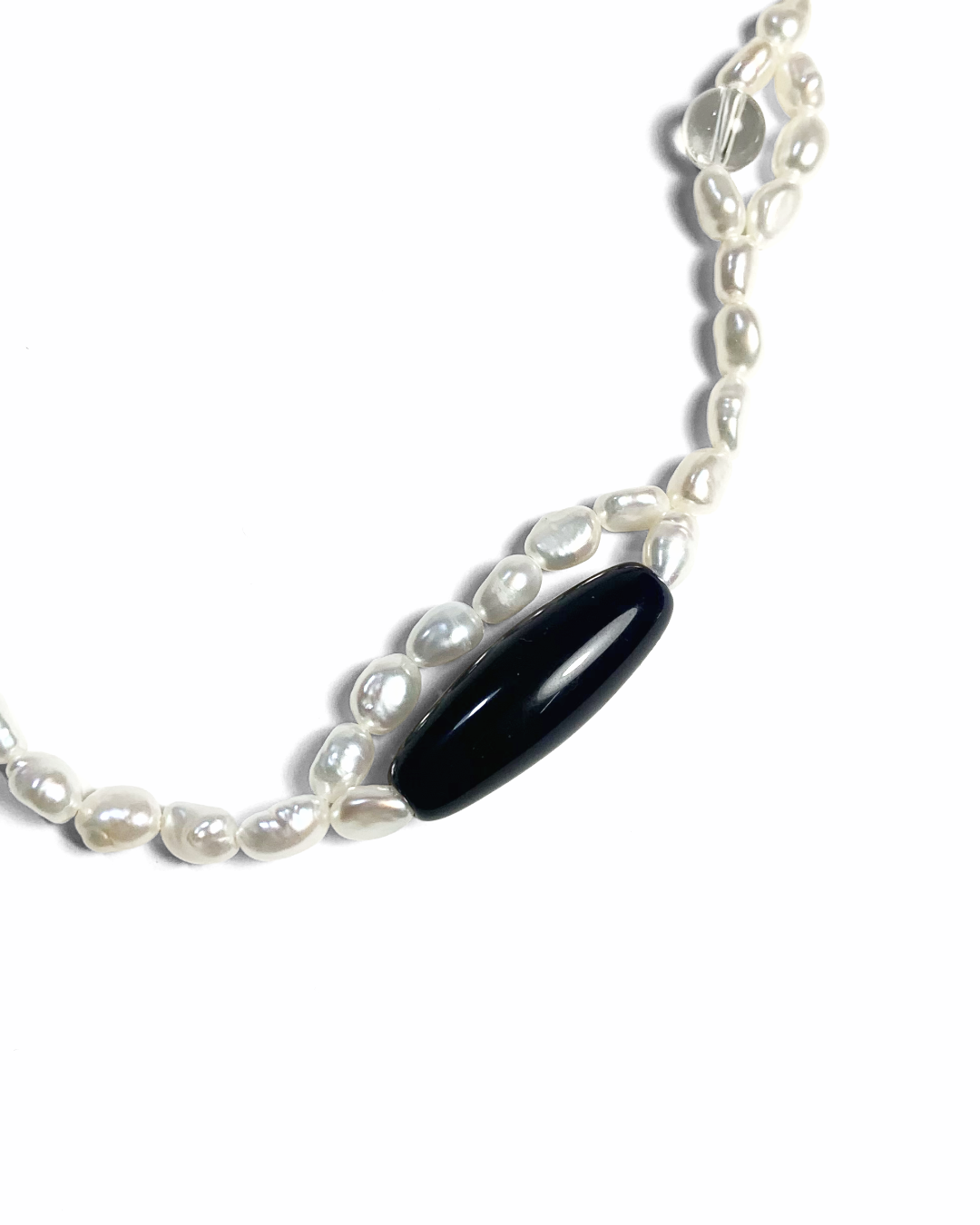 以珍珠為基底,穿插白水晶與不同色澤的瑪瑙。