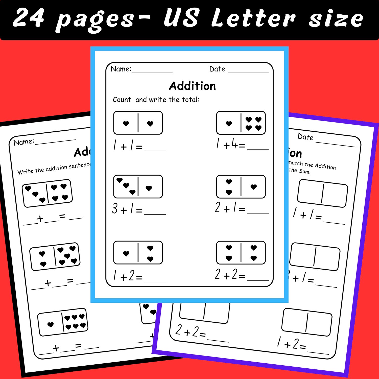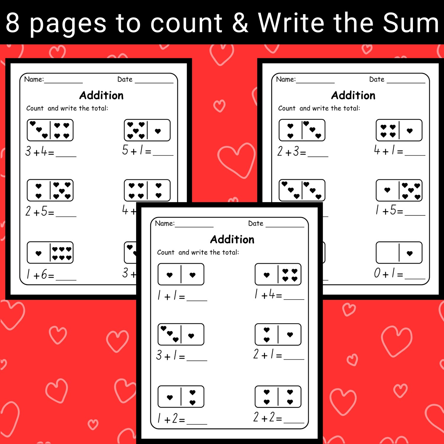 - 8 Pages to count the hearts and write the sum.