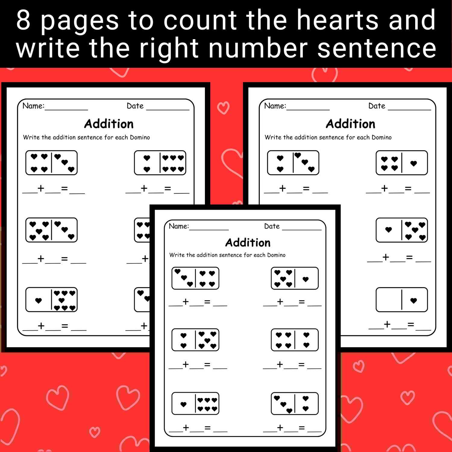 - 8 Pages to count the hearts and write the corresponding number sentence.