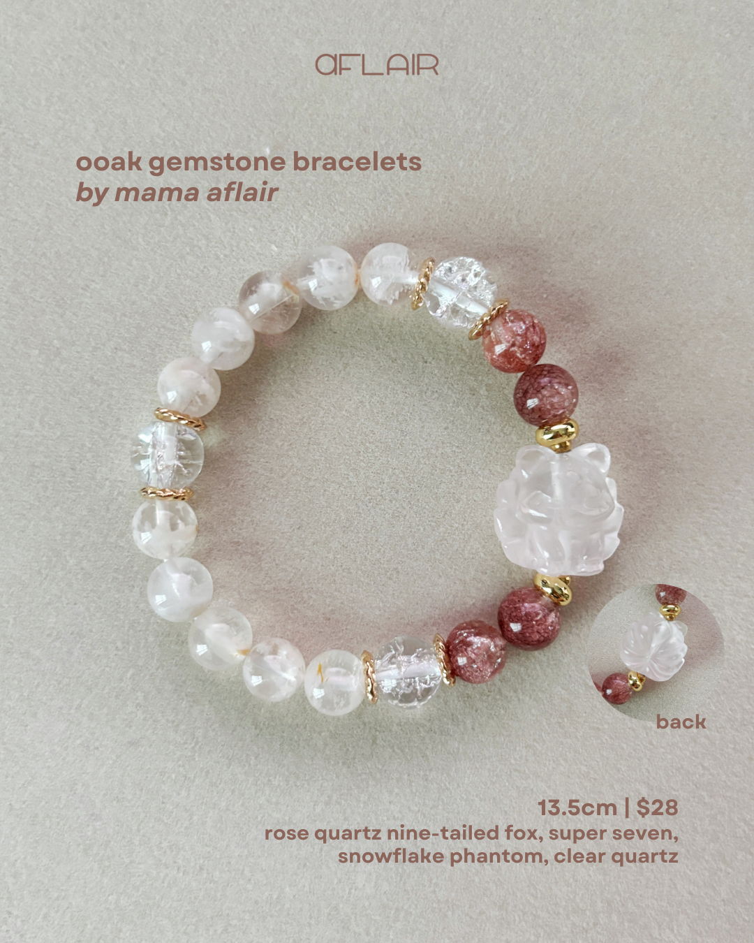01 [13.5cm]: rose quartz nine-tailed fox, super seven, snowflake phantom, clear quartz