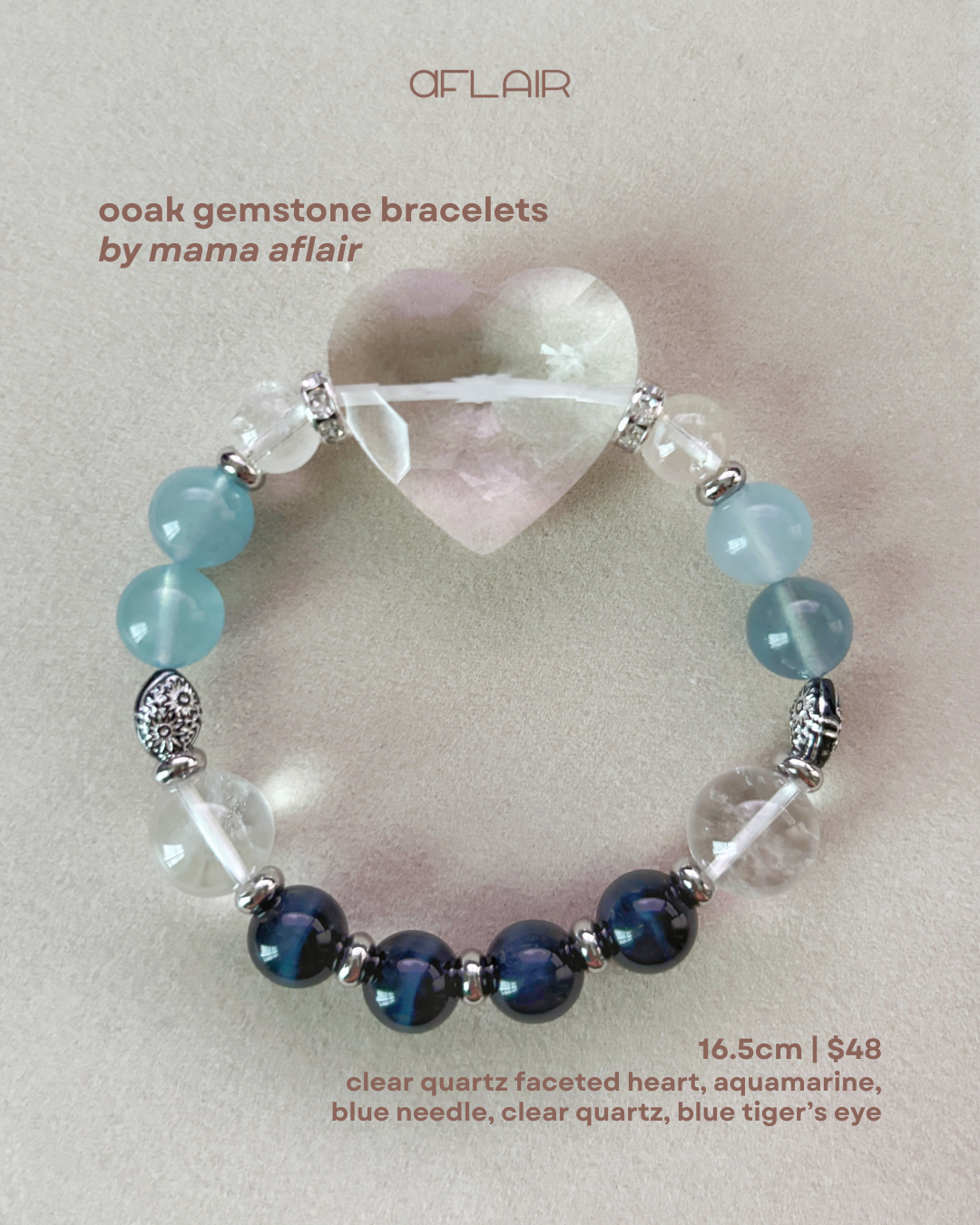 02 [16.5cm]: [clear quartz faceted heart, aquamarine, blue needle, clear quartz, blue tiger’s eye