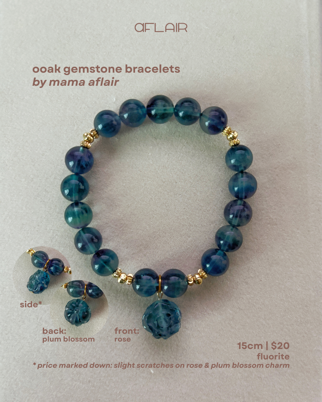 - please allow for a ± 0.5cm variance due to natural differences in gemstones and hardware