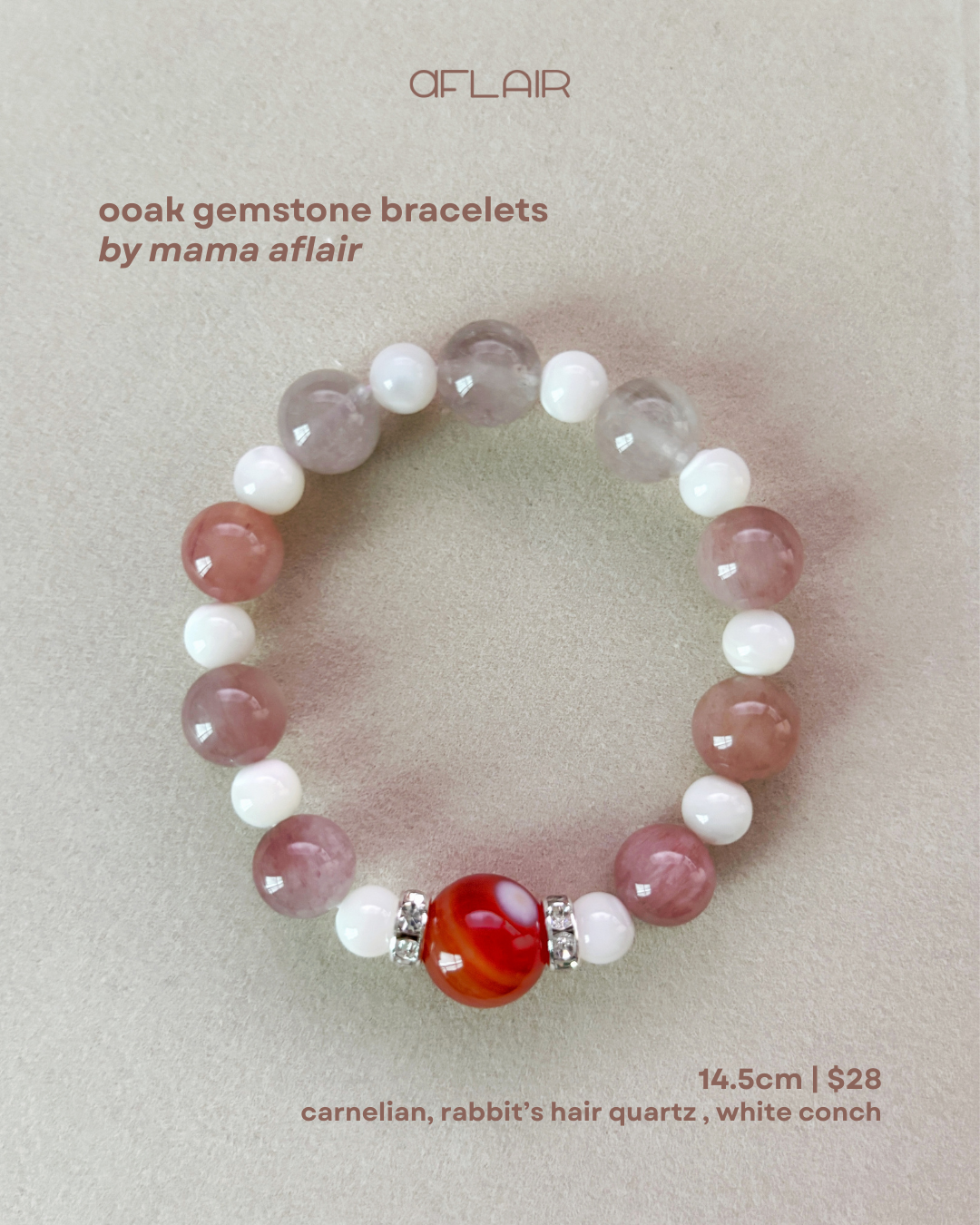 06 [14.5cm]: carnelian, rabbit’s hair quartz , white conch
