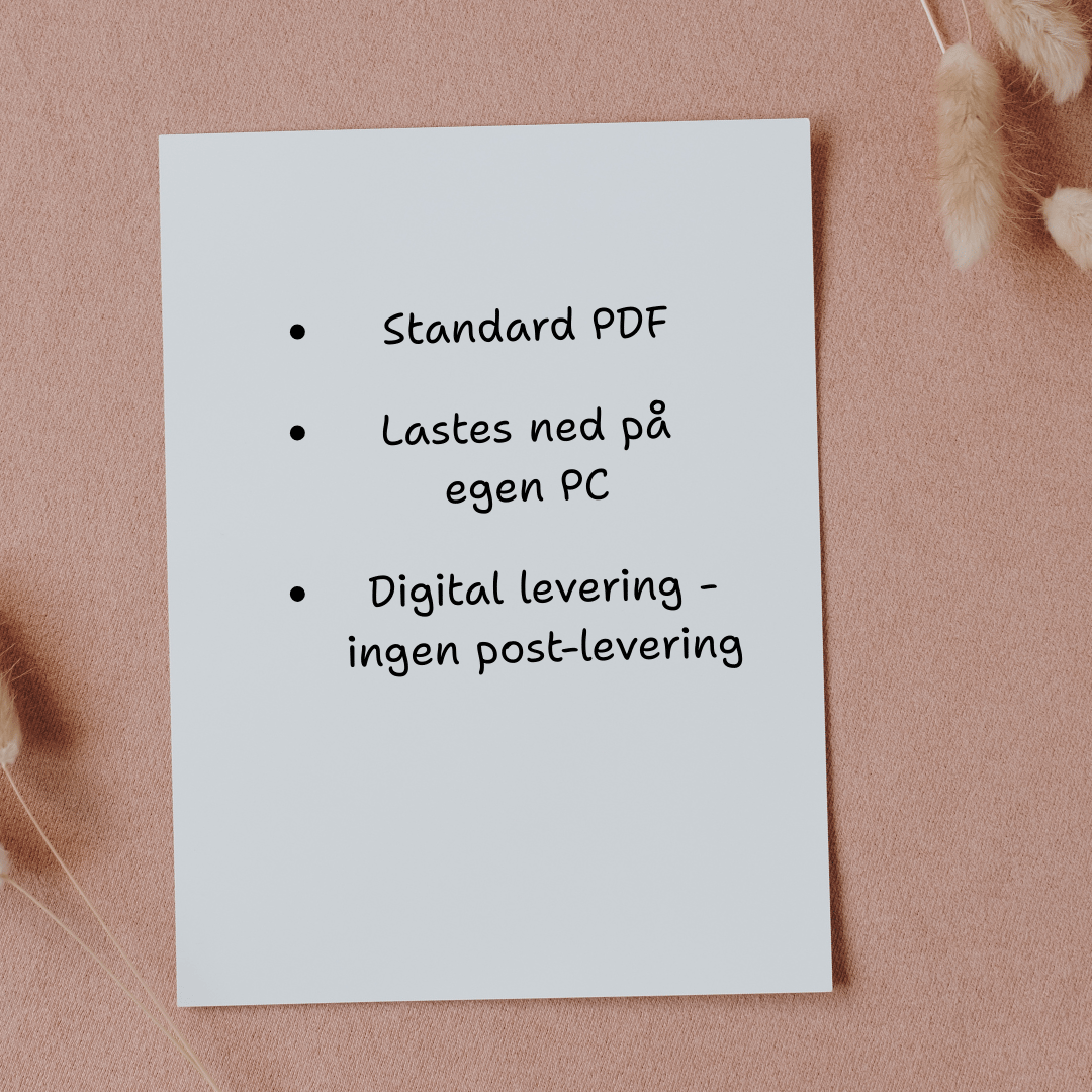 Produktet leveres som digital fil. Ingenting sendes i posten.