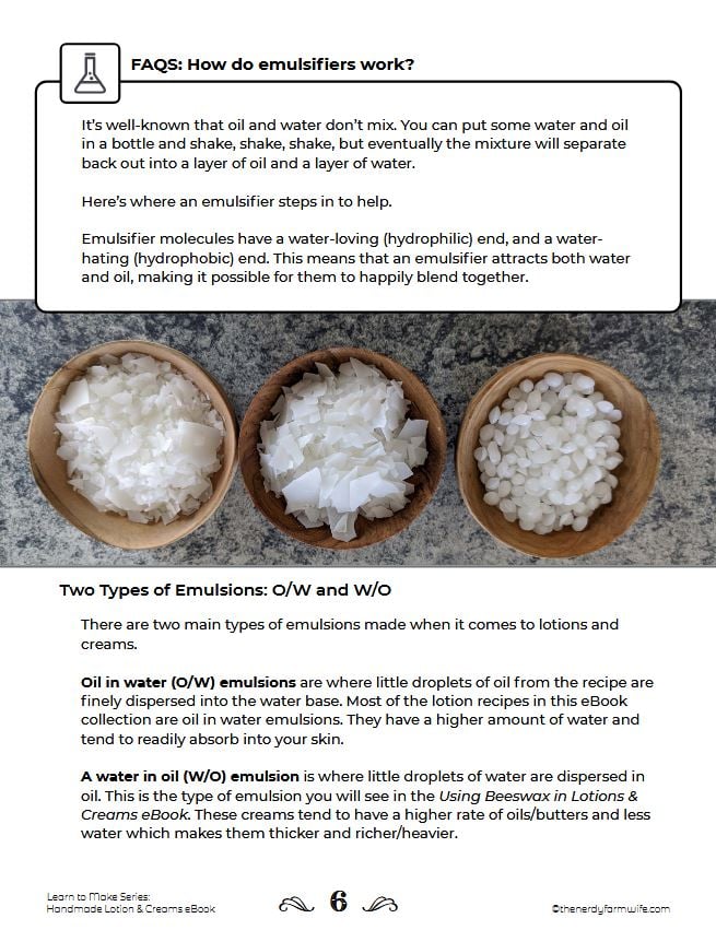 The eBook collection is mainly centered around using emulsifiers. Several are mentioned throughout the eBooks, but for the most part I use Emulsifying Wax (NF) from Mountain Rose Herbs, Olivem 1000 (organic/natural product approved), or Ritamulse SCG (organic/natural product approved). There's an additional 10-page guide that centers around using beeswax instead of an emulsifier. You can use the formula in that guide, along with the other information about herbs, essential oils, etc in this eBook collection to create beeswax-based creams. However, emulsifiers are the main focus.