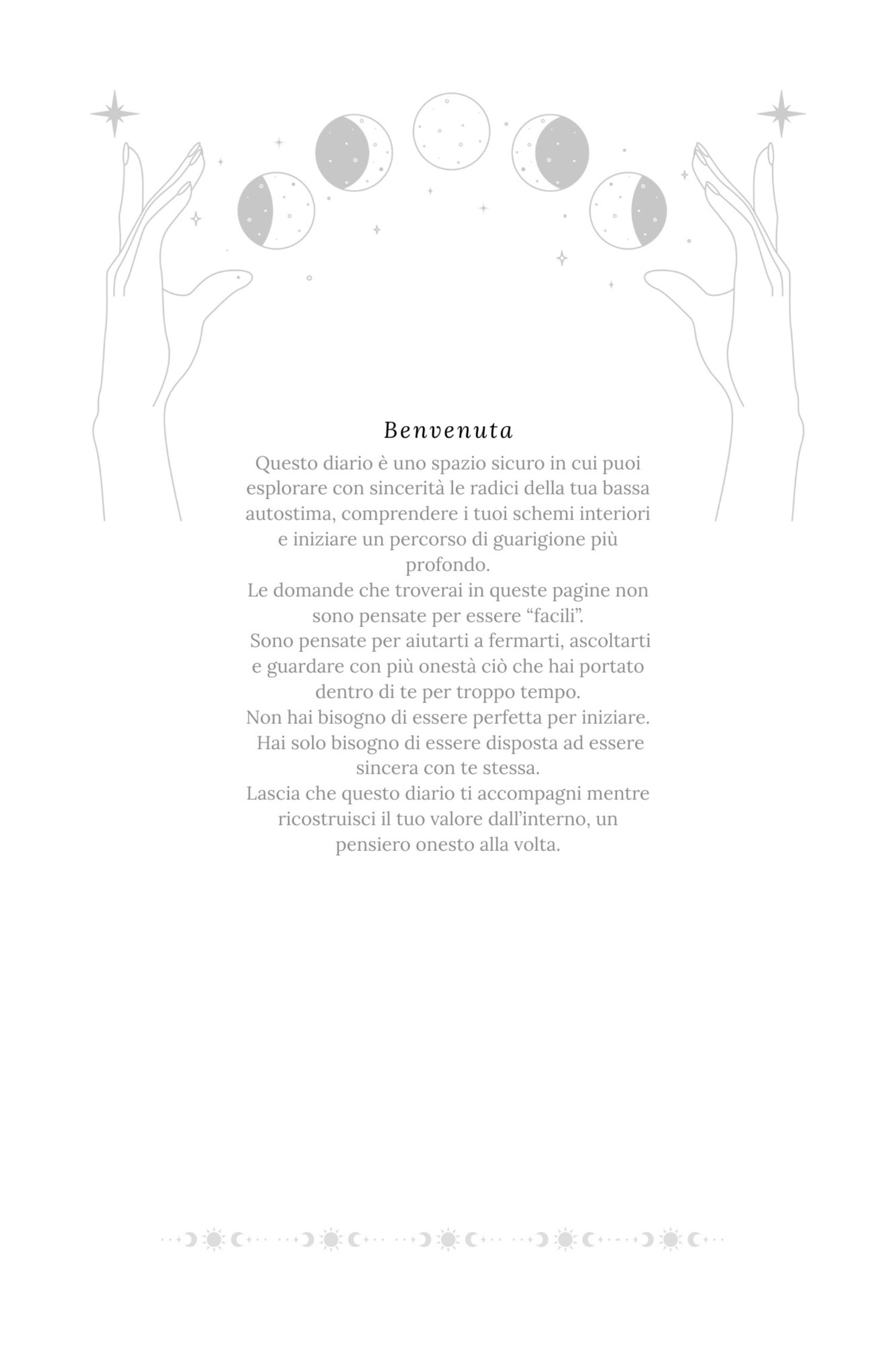 Questo diario guidato è pensato per aiutare le donne a esplorare le radici profonde della bassa autostima, comprendere i propri schemi interiori e iniziare un percorso di guarigione più sincero e consapevole.