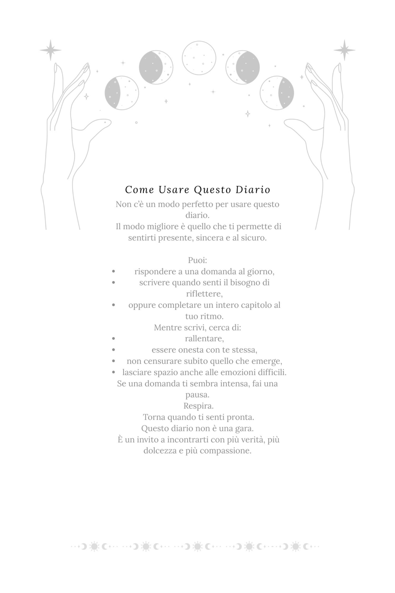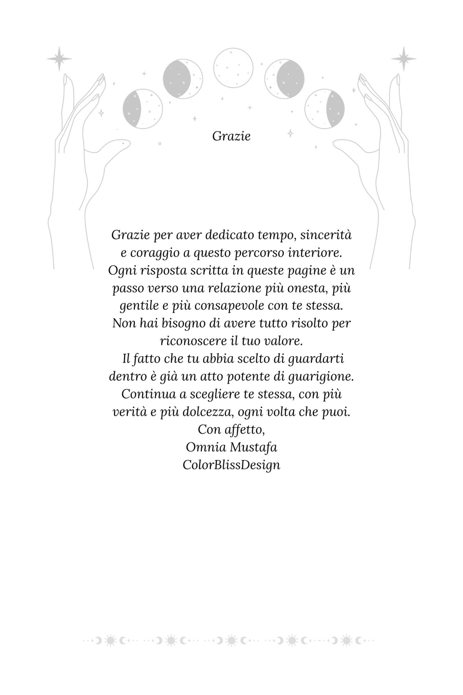 Attraverso domande profonde e pagine di riflessione, il diario accompagna il lettore in un percorso di introspezione, crescita personale e riconnessione con se stesse.
