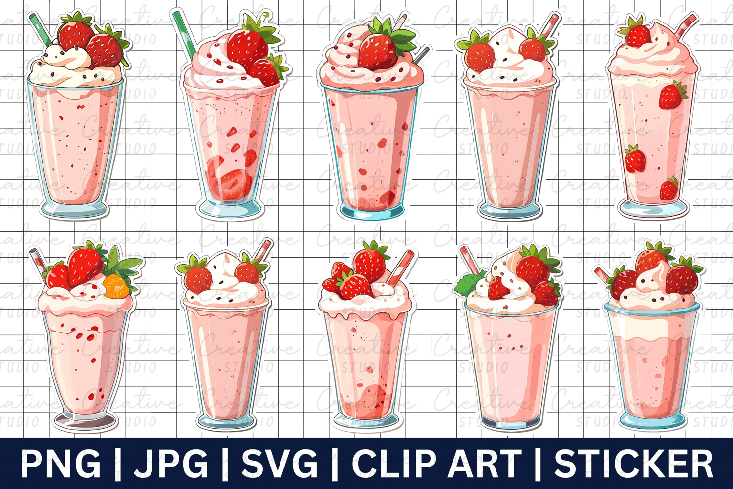 Strawberry Milkshake Clip Art Sticker Sublimation