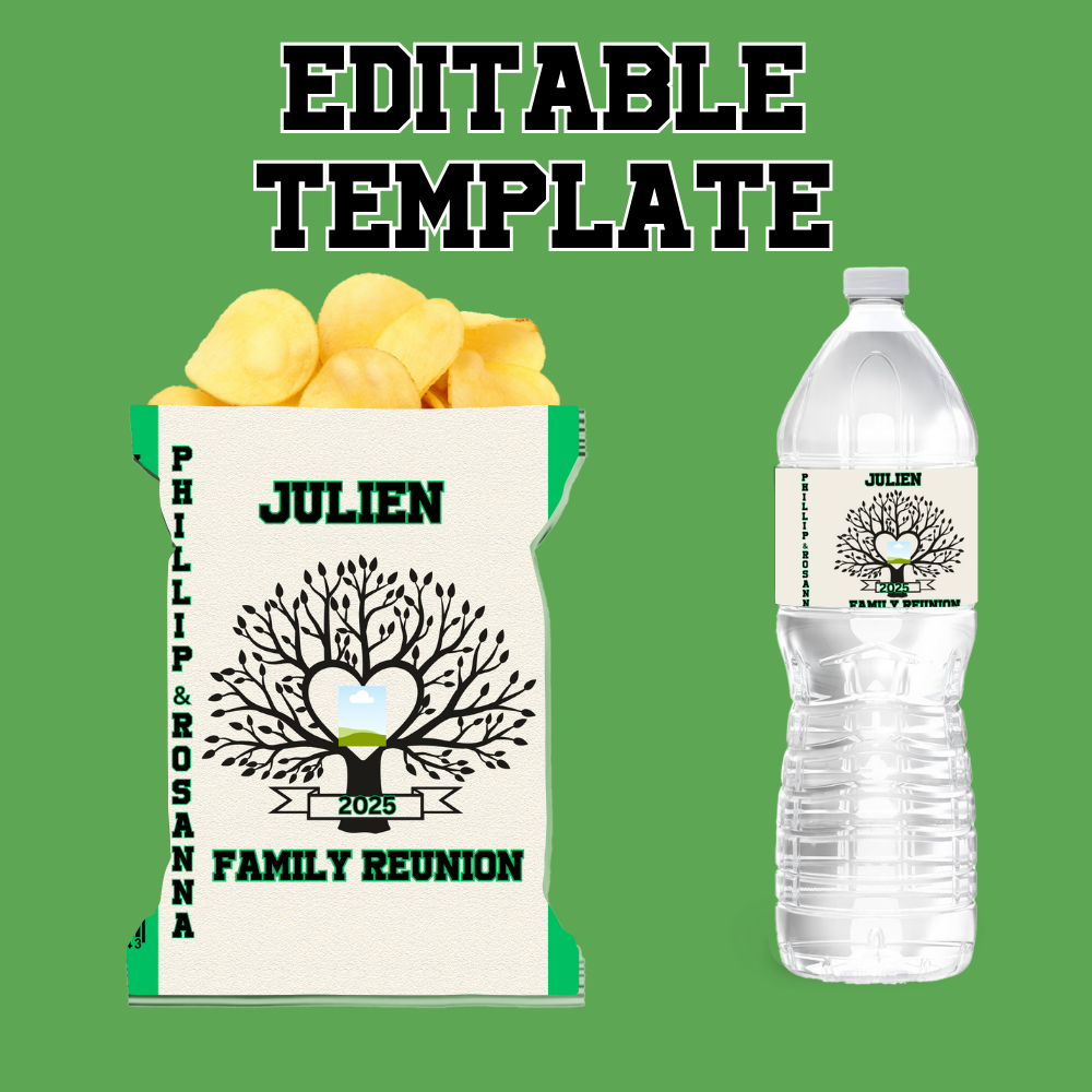Celebrate your family reunion in style with our custom-made digital PNG chip bag and water bottle label set! Designed with love and personalized to match your reunion theme, this digital download is perfect for making your event unforgettable.