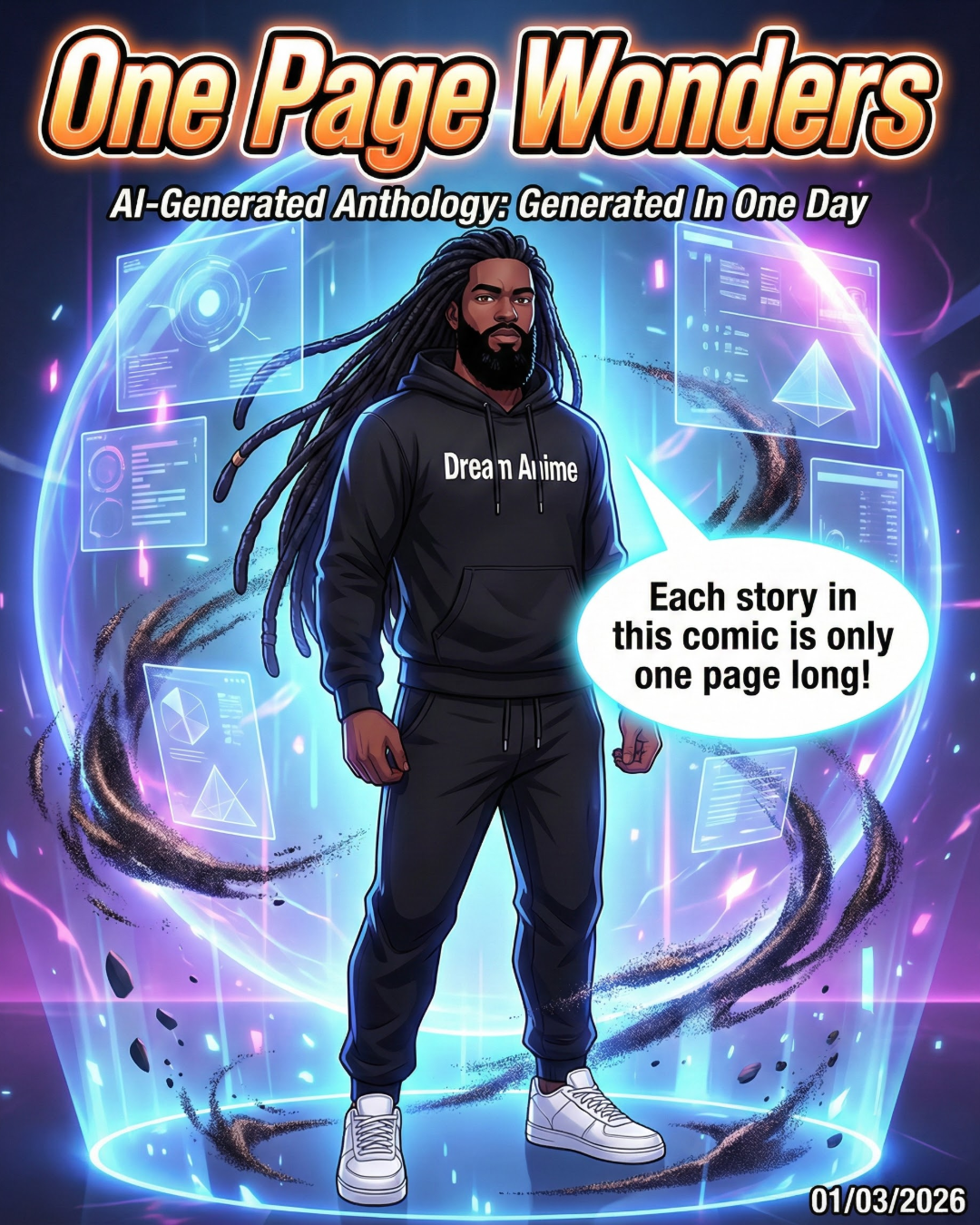 This is an anthology of 8 one-page comics, all created in a single day.