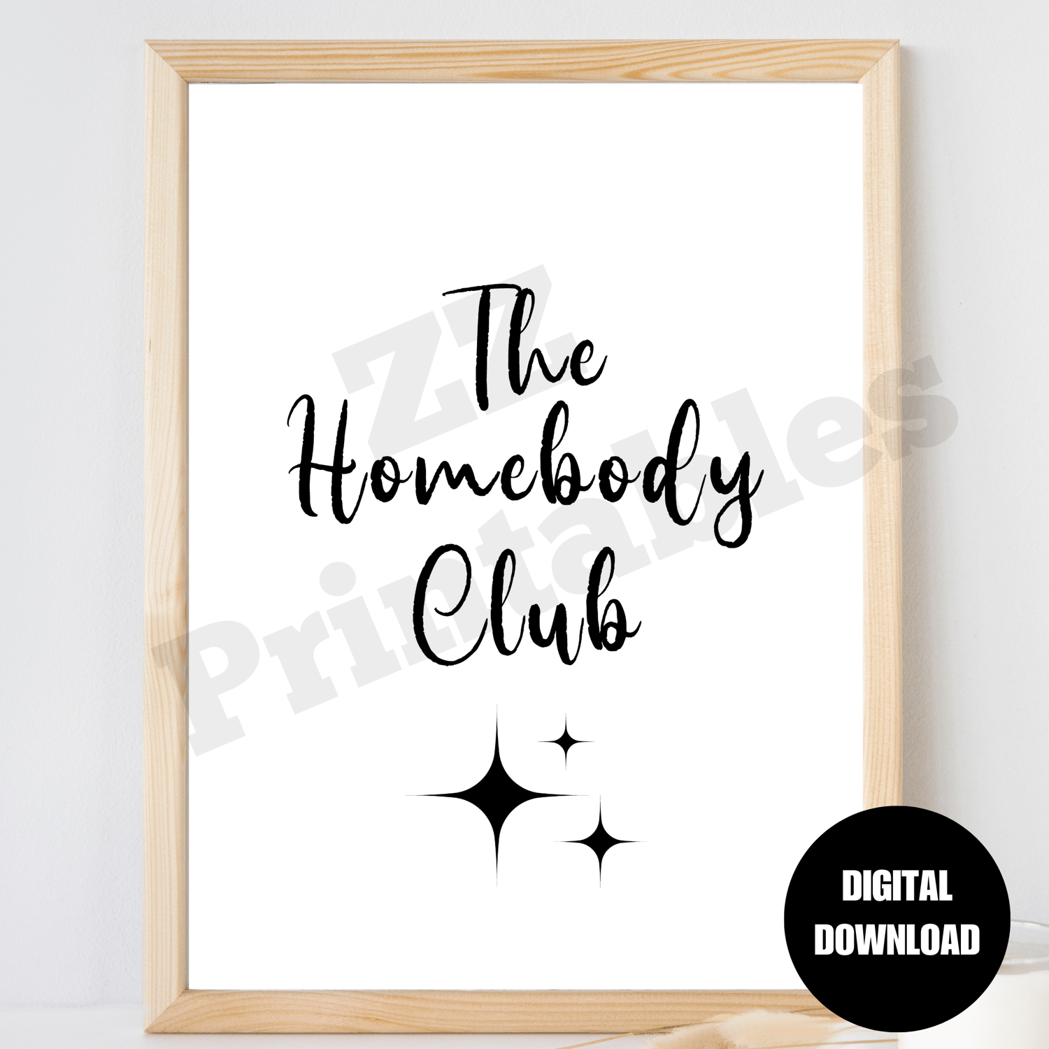 The Homebody Club Print Poster White Black Trendy Script Typography Living Room College Dorm Decor Printable Wall Art Digital Download JPEG. The design comes in 5 different sizes. The digital download consists of a zipped file containing 5 high quality JPEG files (300 dpi) and a PDF size chart to help you choose the right file for the printing size you want.